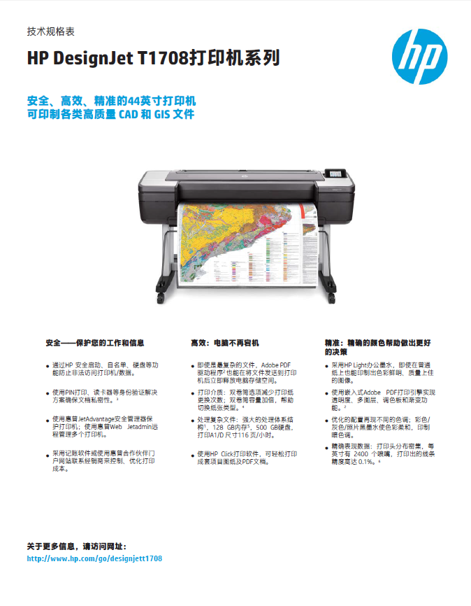 HP Designjet T1708 ePrinter 系列可調(diào)整的 Web 連接 1118 毫米(44 英寸)ePrinter,適用于小型工作組。