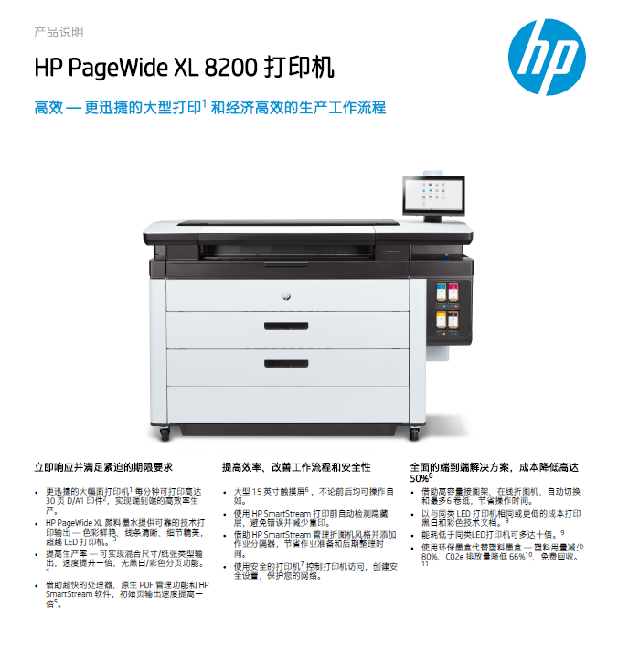速度快的大幅面黑白,藍(lán)圖和彩色工程打印機,總生產(chǎn)成本可節(jié)省高達(dá) 50%
